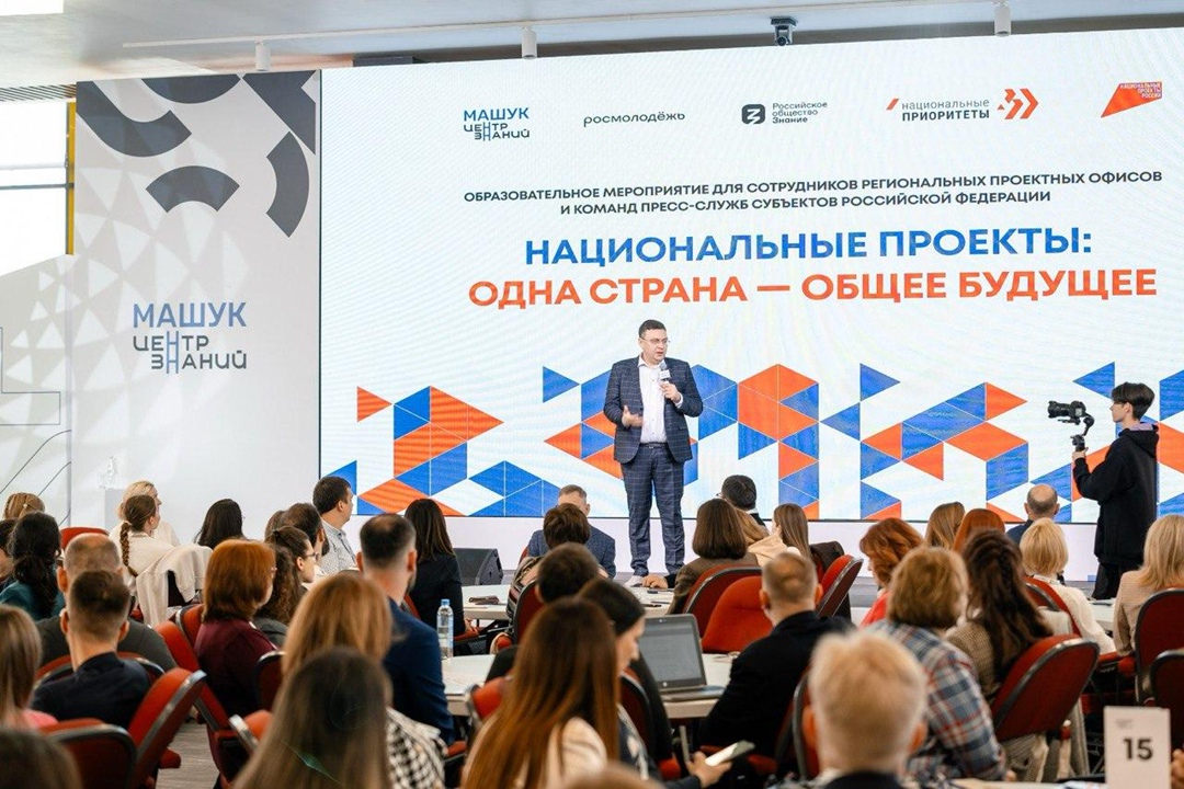 23.05.2024С 12 по 15 мая в Центре знаний «Машук» состоялось образовательное мероприятие для сотрудников региональных проектных офисов и пресс-служб глав субъектов Российской Федерации «Национальные проекты: «одна страна – общее будущее». Более 230 специалистов в сфере коммуникаций из 81 региона познакомились с моделями работы по продвижению национальных проектов и стратегических инициатив, организации эффективной и устойчивой модели управления медиатрендами. Среди спикеров программы – федеральные и региональные эксперты в области проектной деятельности и связей с общественностью.«АНО» Национальные приоритеты» с 2020 года работают над цифровыми решениями для повышения эффективности коммуникационной работы по национальным проектам и стратегическим инициативам, - говорит заместитель генерального директора АНО «Национальные приоритеты» Михаил Шумаков. - Благодаря совместной работе с регионами в информационной системе «Контента» удалось получить рекордный рост медиаактивности по национальным проектам. За последние два года в 4 раза выросло количество информповодов и выходов материалов в СМИ. Это напрямую влияет на уровень знания мер и возможностей нацпроектов, а значит больше людей могут ими воспользоваться.»Центр знаний «Машук» – всероссийский образовательный центр подготовки просветительских и управленческих кадров, площадка для кооперации Министерства просвещения РФ, Министерства науки и высшего образования РФ, Росмолодежи, Российского общества «Знание», государственных институтов развития, корпоративных университетов, организаций бизнес-образования и просветительских центров.«Центр знаний «Машук» является ярким примером успешной реализации национального проекта «Образование», и именно здесь мы объединили людей, которые отвечают за медиаосвещение национальных проектов у себя в регионах. Мы поговорили с ними о том, как внедрять в свою работу эффективные наставнические методики, а также поближе познакомили участников друг с другом для обмена лучшими практиками коммуникационной работы», – отметил генеральный директор Центра знаний «Машук», заместитель генерального директора Российского общества «Знание» Антон Сериков.С лекцией «Лаборатория компетенций для коммуникаторов в сфере нацпроектов и госкоммуникаций» выступила заместитель генерального директора АНО «Диалог Регионы», основатель «Мастерской новых медиа» Юлия Аблец.«Чтобы быть эффективным, современному коммуникатору нужно развивать в себе три группы компетенций: первая связанная с интеллектом, вторая — с самоуправлением, третья — с работой в команде. Если выделить приоритеты, то это: постоянно совершенствоваться в социогуманитарных науках, получать базовые знания, развивать понимание фундаментальных основ, на которых дальше можно строить рассуждения и трактовки происходящему. Следующий приоритет – это умение использовать технологии в своей работе, потому что в медиасфере они дают больше половины процента успеха и позволяют быть на шаг впереди. Третий приоритет — это эмпатия, внимание и любовь к людям. Если ты со своим сообщением не попадаешь в самое сердце человеку, то он не услышит, что ты хочешь ему сказать. Это непросто, когда у тебя большая аудитория, и умение от абстрактной целевой аудитории перейти к конкретному человеку —