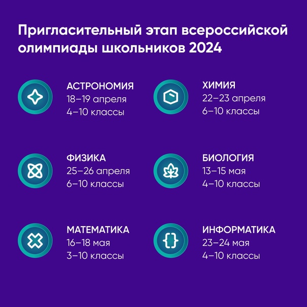 25.04.2024Открыта регистрация на пригласительный этап всероссийской олимпиады школьников!С 2020 года Образовательный центр «Сириус» проводит пригласительный этап ВсОШ. За 4 года более 1,3 миллиона участников смогли познакомиться с нестандартными задачами на технологической платформе Сириус.Курсы и открыть для себя увлекательный мир науки.Олимпиада проводится по 6 естественнонаучным предметам.Как принять участие? Регистрация уже открыта на сайте https://vk.cc/c0TUWK. Можно регистрироваться на несколько общеобразовательных предметов, при этом для каждого необходимо подать отдельную заявку.Следите за обновлениями в сообществе Сириус Олимп: все об олимпиадах