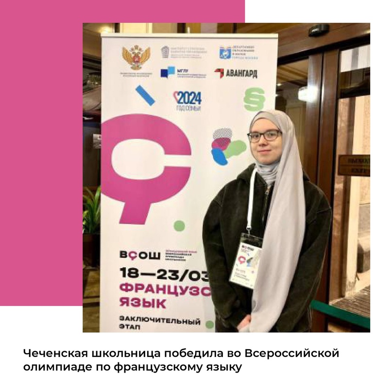26.03.2024Победительницей заключительного этапа Всероссийской олимпиады школьников по французскому языку стала ученица 9 класса гимназии № 7 города Грозного Марьяна Белинская.Заключительный этап прошел с 18 по 23 марта в Москве на площадке Московского государственного лингвистического университета. В этом интеллектуальном состязании Чеченскую Республику представила ученица 9 класса гимназии № 7 Грозного Марьяна Белинская.По результатам напряженной интеллектуальной битвы, школьница из Грозного стала победительницей заключительного этапа Всероссийской олимпиады школьников 2023-2024 учебного года по французскому языку среди 324 участников из всей страны.