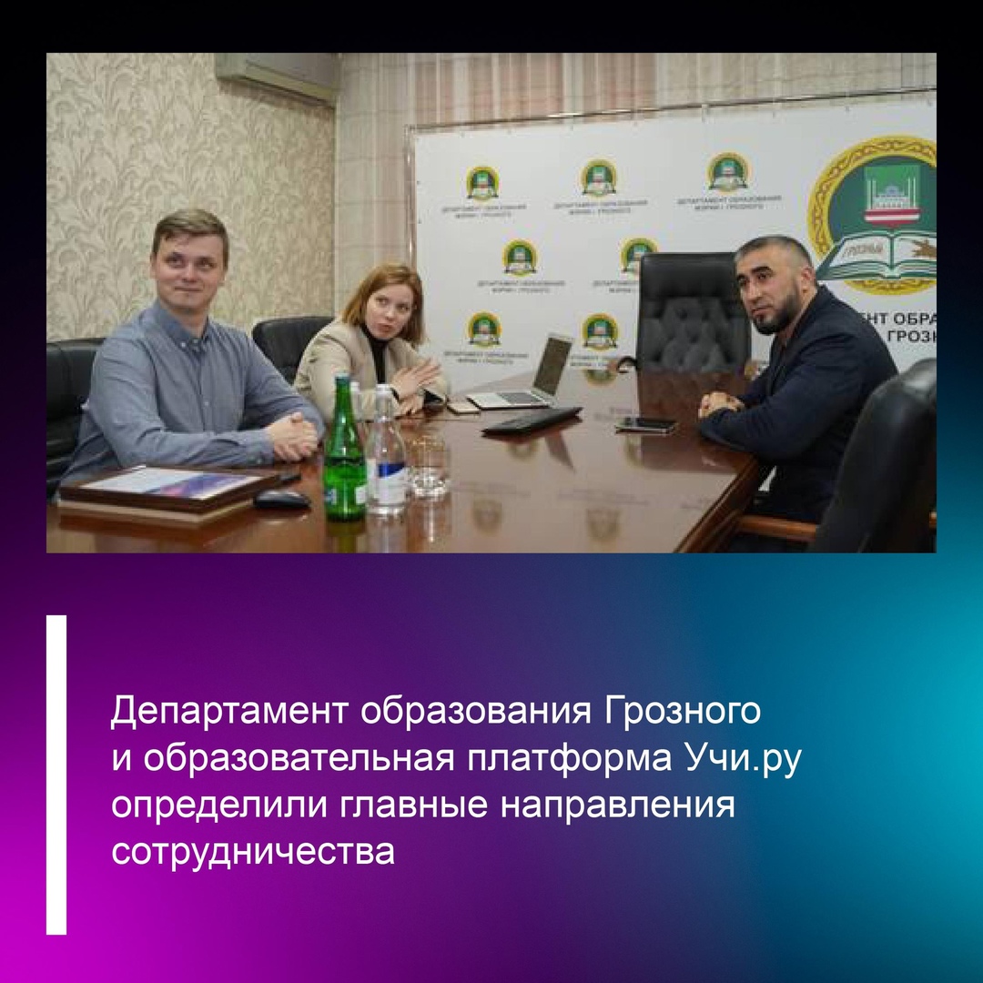 22.11.2024В департаменте образования мэрии Грозного обсудили вопросы реализации программы «Территория безопасности» образовательной платформы Учи.ру и развития олимпиадного движения в городе.Особое внимание на встрече было уделено результатам всероссийской олимпиады «Безопасные дороги». Также определили направления дальнейшего взаимодействия до конца полугодия. Планируется проведение олимпиад «Культура вокруг нас» в рамках нацпроекта "Культура" и «Безопасный интернет» в рамках нацпроекта "Цифровая экономика", а также программы повышения квалификации педагогов с использованием платформы Учи.ру.
