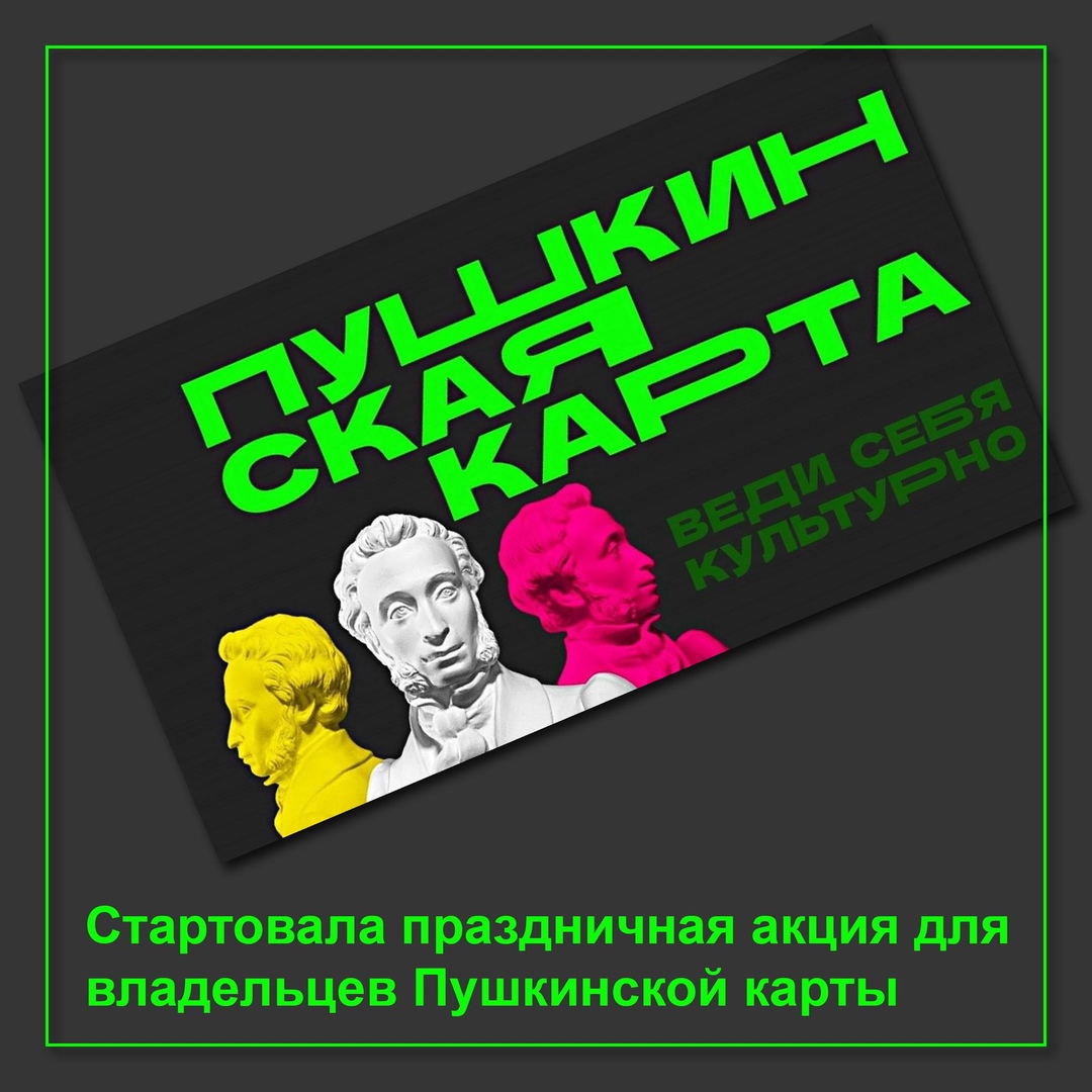 25.12.2024С 30 декабря 2024 года по 12 января 2025 года в России пройдет акция «Веди родителей в музей» для владельцев Пушкинской карты. При покупке билета по карте можно получить 10% скидку на два билета для родителей. Во время новогодних каникул акция станет отличным подарком и поводом для семейного досуга.В акции участвуют 1267 учреждений культуры в 72 регионах России, включая крупнейшие театры и знаменитые музеи. Многие из них подготовили специальные новогодние программы для семейных посетителей.Держатели Пушкинской карты – молодые люди в возрасте 14-22 лет – могут бесплатно посещать музеи, театры и другие культурные учреждения за счет государства.
