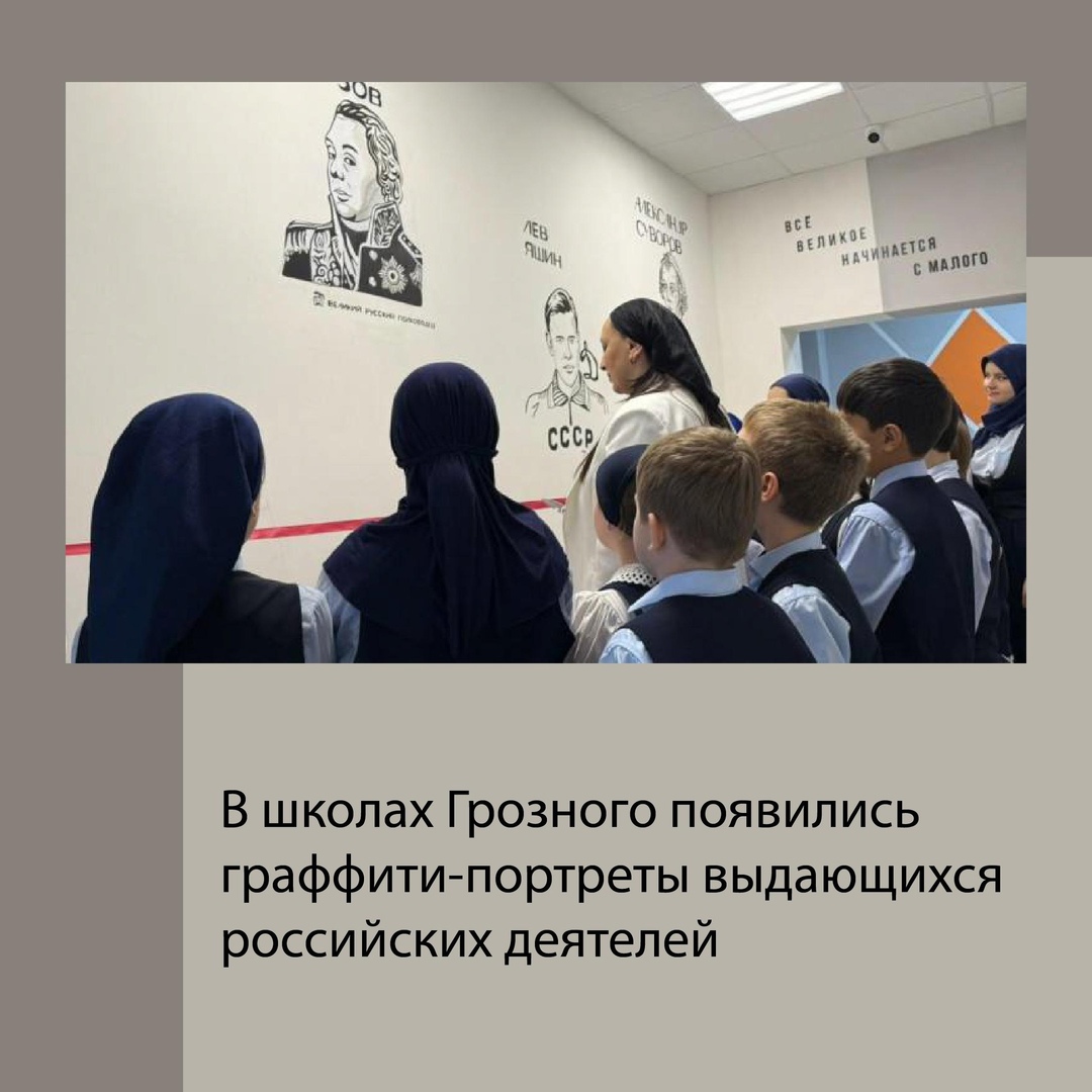 13.12.2024В школах Грозного прошла акция «Лица Героев». В образовательных организациях появились муралы в честь Александра Пушкина, Михаила Ломоносова, Дмитрия Донского, Александра Невского, Юрия Гагарина, а также Магомеда Нурбагандова.Такие же граффити-портреты появились и в школах других районов республики.Акция «Лица Героев», приуроченная ко Дню Героев Отечества, реализуется во всех регионах страны – портреты выдающихся личностей размещаются в классах, школьных музеях, на фасадах школ и спортивных учреждений.