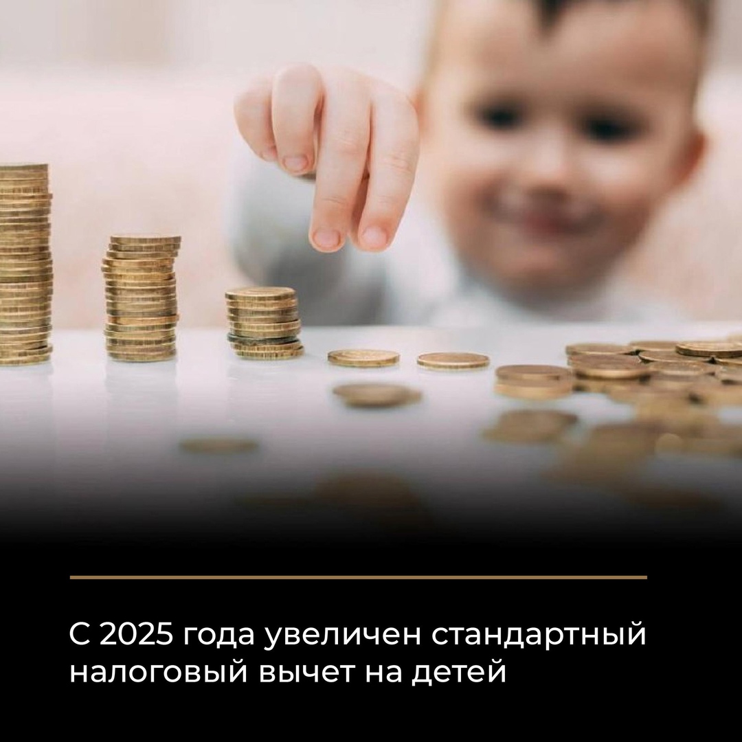 15.01.2025Что такое налоговый вычетЭто льгота, позволяющая вернуть часть налогов, уплаченных государству. Чаще всего это возврат при покупке квартиры, расходах на лечение, обучение или спорт. Получить налоговый вычет может любой гражданин РФ, платящий НДФЛ. Размер налоговых вычетов на детей в 2025 году.Стандартный налоговый вычет на второго ребенка увеличился с 1400 до 2800 рублей, на третьего и каждого последующего – с 3000 до 6000 рублей. Вычет на первого ребенка остался 1400 рублей.Вычет для опекунов, попечителей и приемных родителей на ребенка-инвалида увеличен с 6000 до 12000 рублей. Эта мера также касается студентов до 24 лет с инвалидностью.Нормы для единственных родителей остаются в удвоенном размере:- на второго ребенка – 5600 рублей в месяц,- на третьего и последующих – 12000 рублей,- на ребенка-инвалида – 24000 рублей.Предельный доход для получения налоговых вычетов увеличен с 350 тыс. до 450 тыс. рублей.Где можно получить вычетыСтандартный налоговый вычет на детей предоставляется работодателем автоматически при наличии необходимых сведений, без подачи заявления. При первом получении вычета нужно предоставить документы, подтверждающие право на него.