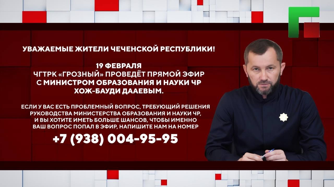19 февраля в 18:00 на телеканале ЧГТРК «Грозный» состоится прямой эфир программы «Особый разговор».